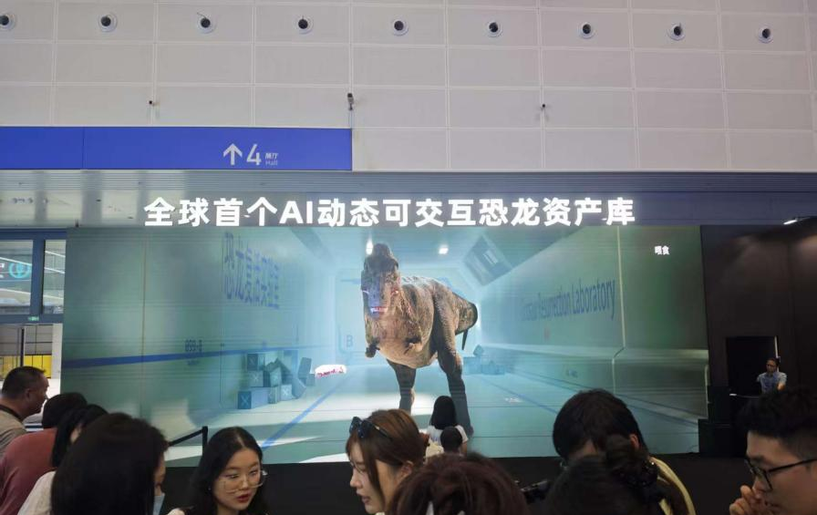 在数字文娱展区,一个能感知环境、听懂人话,甚至会对食物表现出“偏好”的AI恐龙家族,也吸引大量观众驻足互动。这是由中国美术学院视觉中国协同创新中心推出的全球首个数字AI动态可交互恐龙资产库。