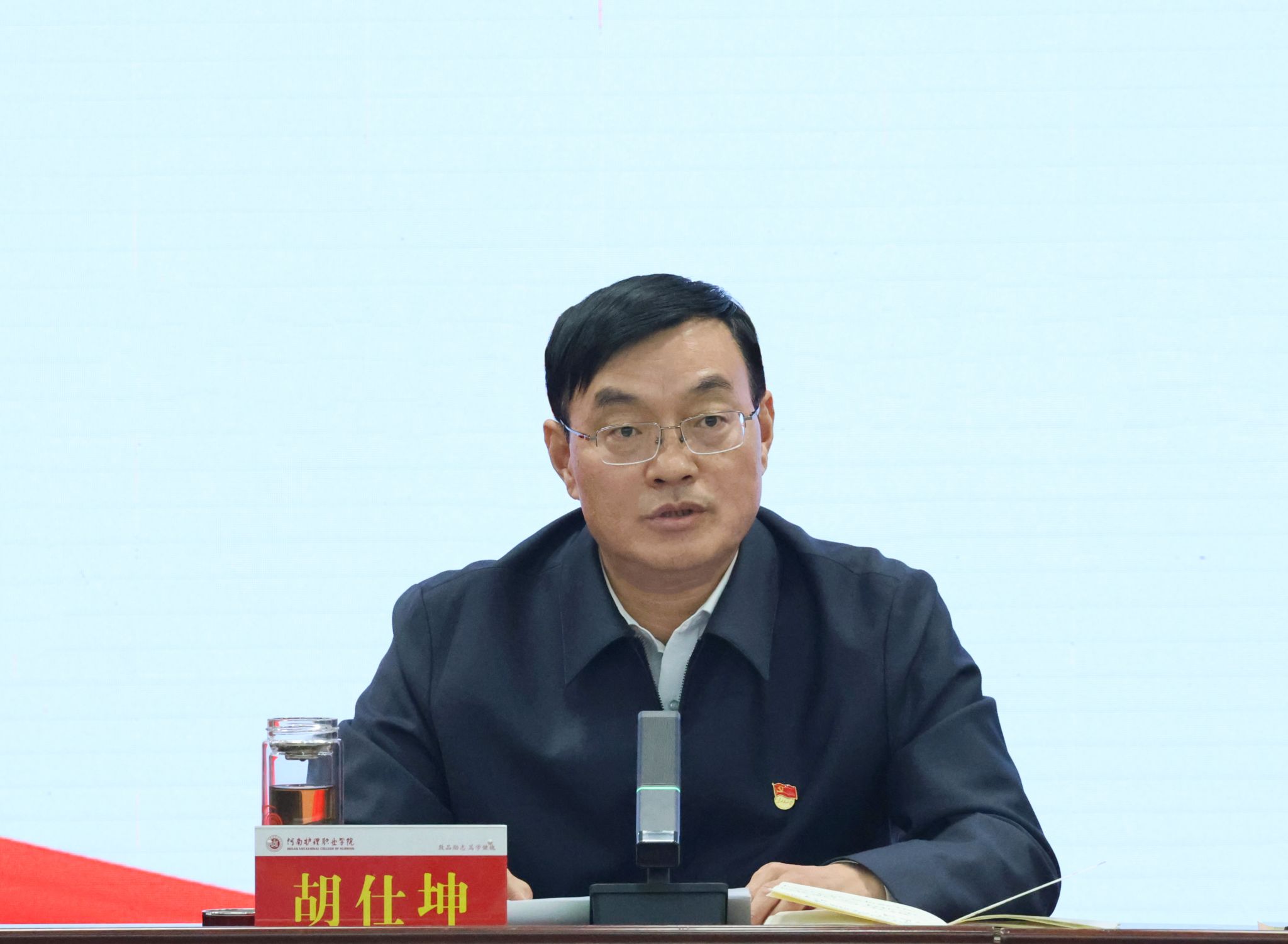 1月14日下午,河南护理职业学院党委书记、院长胡仕坤主持召开党委理论学习中心组(扩大)学习会议,校领导班子成员、全体副科级以上干部、各基层党支部书记和党政办公室、党委组织部、党委宣传部、纪检监察处全体人员参加会议。