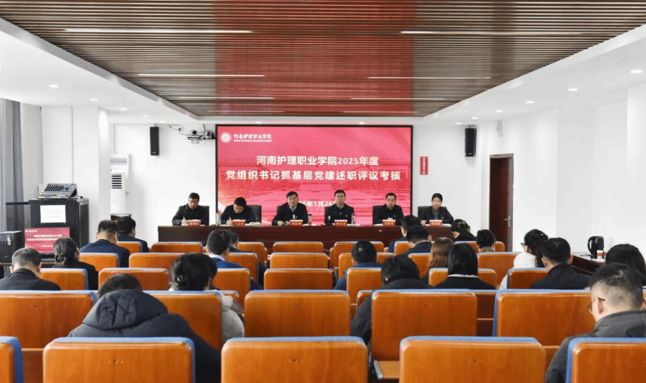 1月26日上午,河南护理职业学院召开2025年度党组织书记抓基层党建述职评议考核会议,全面总结二级党组织抓党建、强作风、严纪律、促发展的工作成效,进一步压实基层党建和全面从严治党主体责任,推动党建工作与学校事业发展深度融合。校领导、相关职能部门负责同志、各党总支(直属党支部)书记、“两代表一委员”及民主党派、无党派人士代表参会,会议由党委副书记、工会主席钟会亮主持。