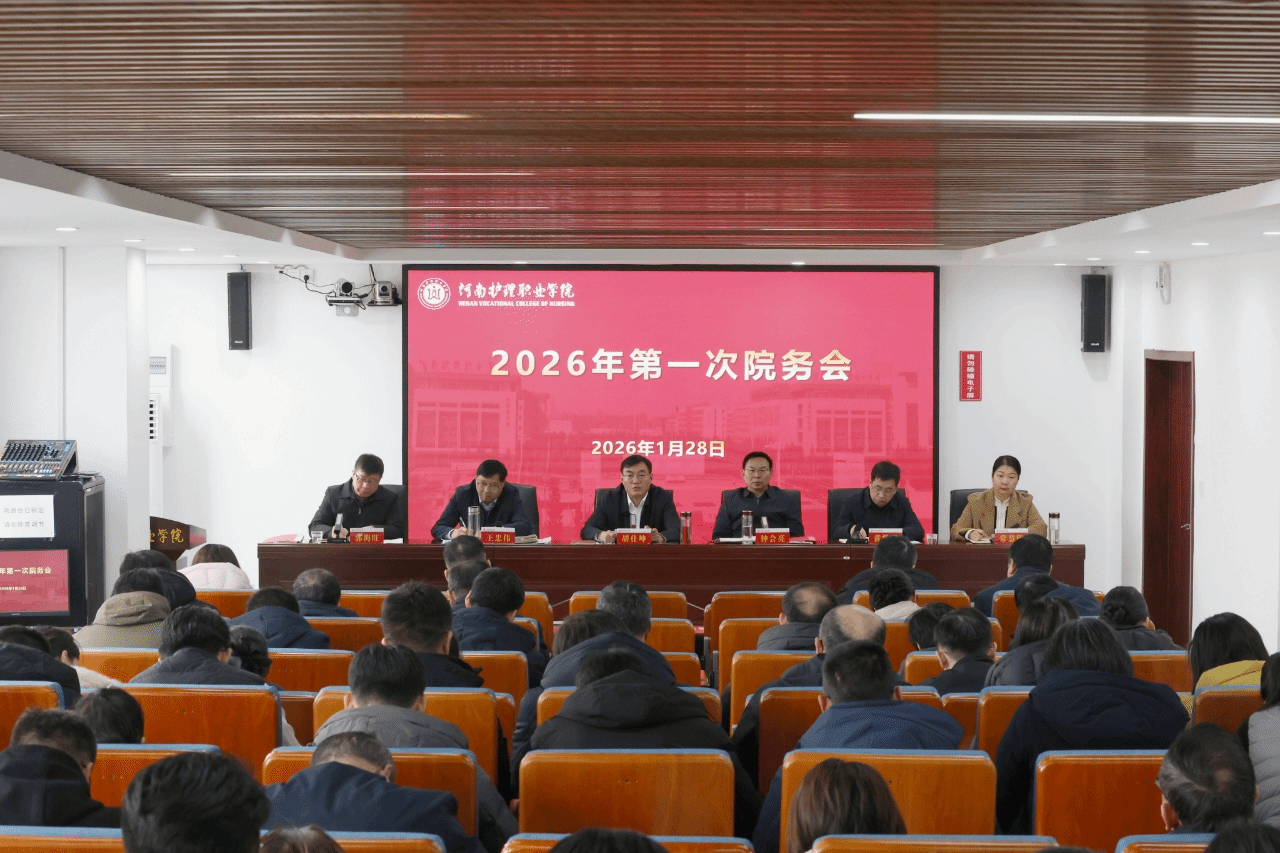 为统筹推进寒假期间各项工作平稳有序开展,压实工作责任,筑牢安全防线,1月28日上午,河南护理职业学院组织召开2026年第一次院务会议。全体校领导出席会议,副科级以上干部参加会议,会议由党委书记、院长胡仕坤主持。